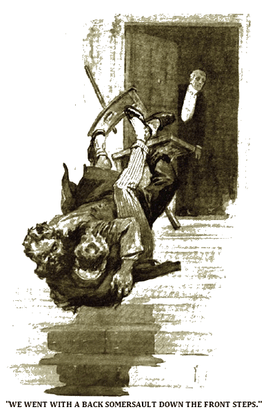 How absurd life is! I found myself mechanically bowing and shaking hands with a little ginger-haired man who was coiled up in the deep arm-chair which had once been sacred to my own use. We bobbed and grinned in front of each other.